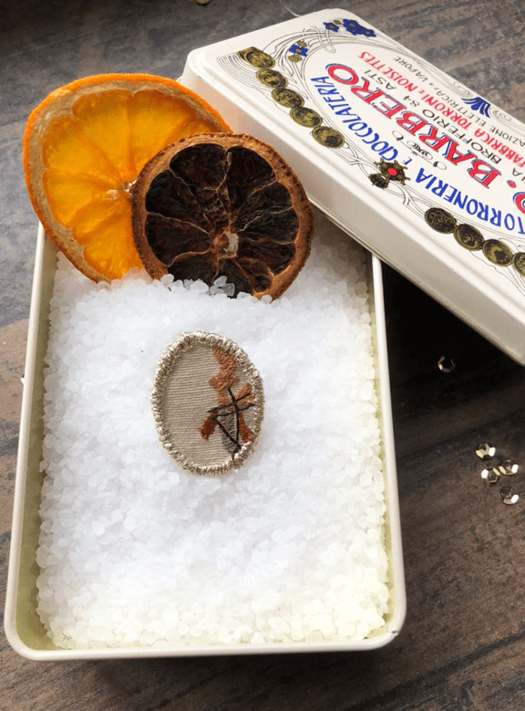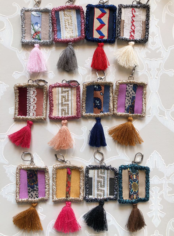 Stoffe che, altrimenti, andrebbero perse ritrovano, tra le mani di Chiara una nuova vita, diventando orecchini, spille anelli o collane.