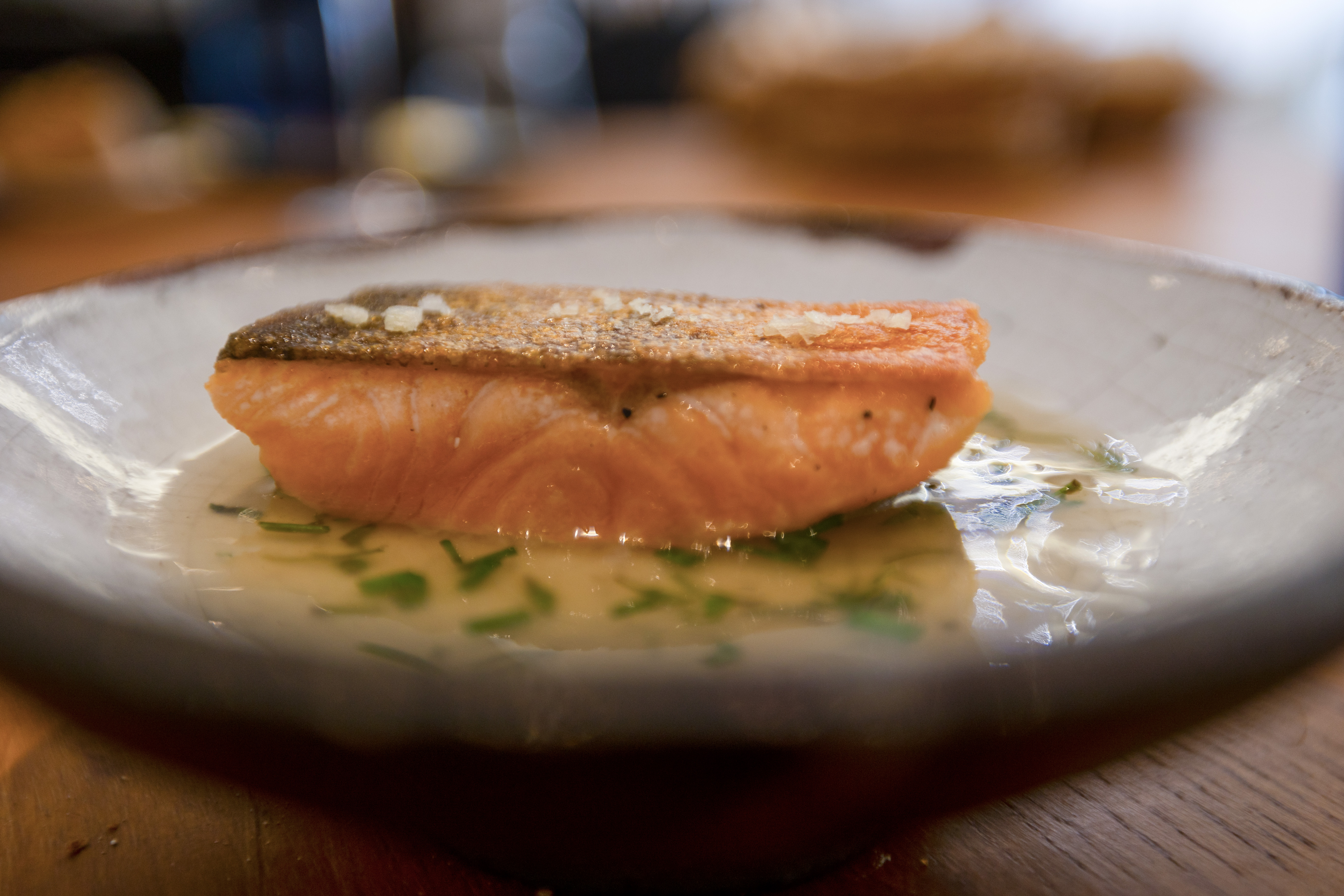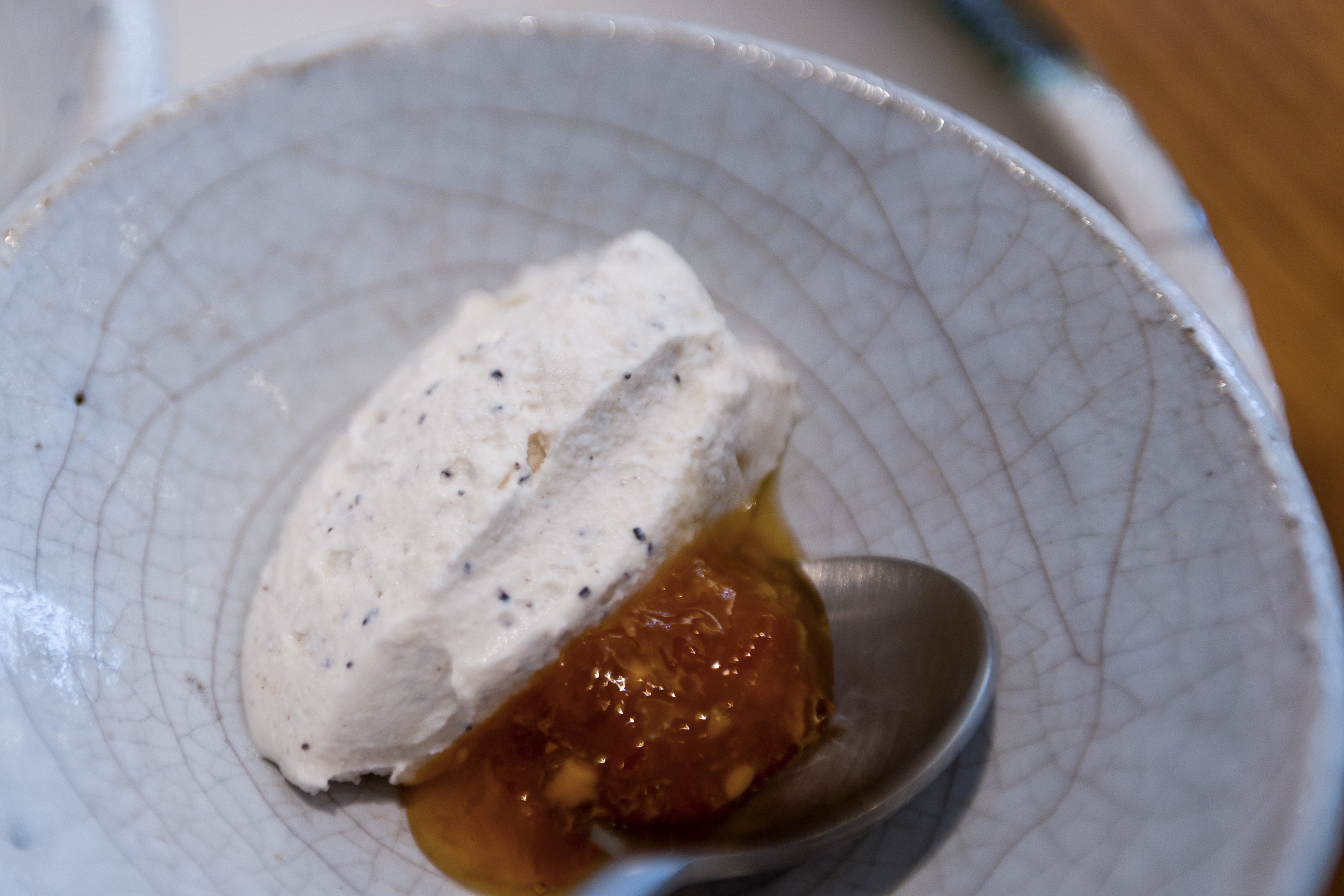 Seguendo la filosofia kaiseki giapponese, lo chef sceglie solo ingredienti stagionali e sceglie di fornirsi da piccoli produttori e raccoglitori locali.