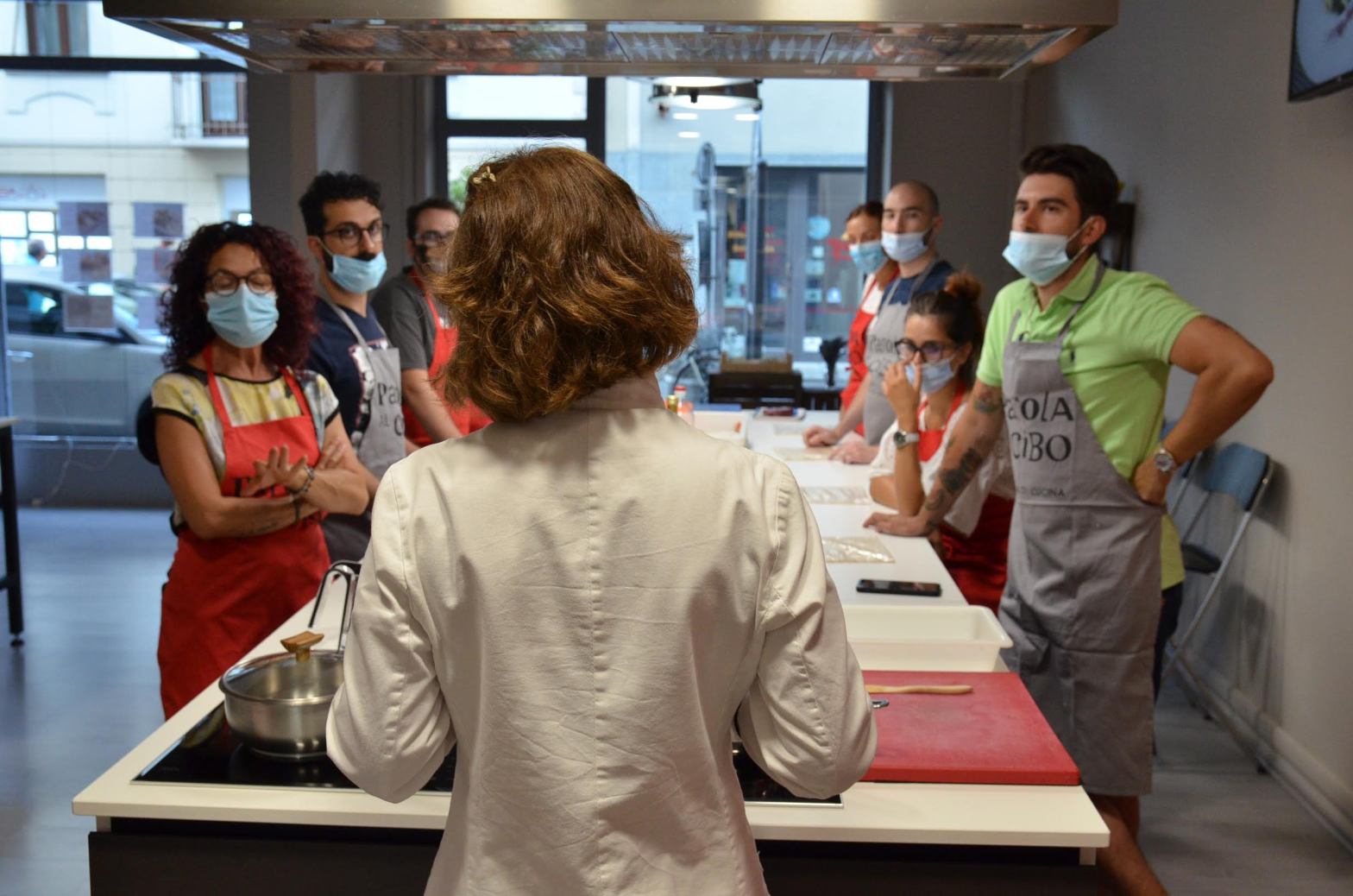 Durante le lezioni – che sono di tipo collaborativo – si lavora alle tecniche base e al corretto utilizzo delle attrezzature di cucina.