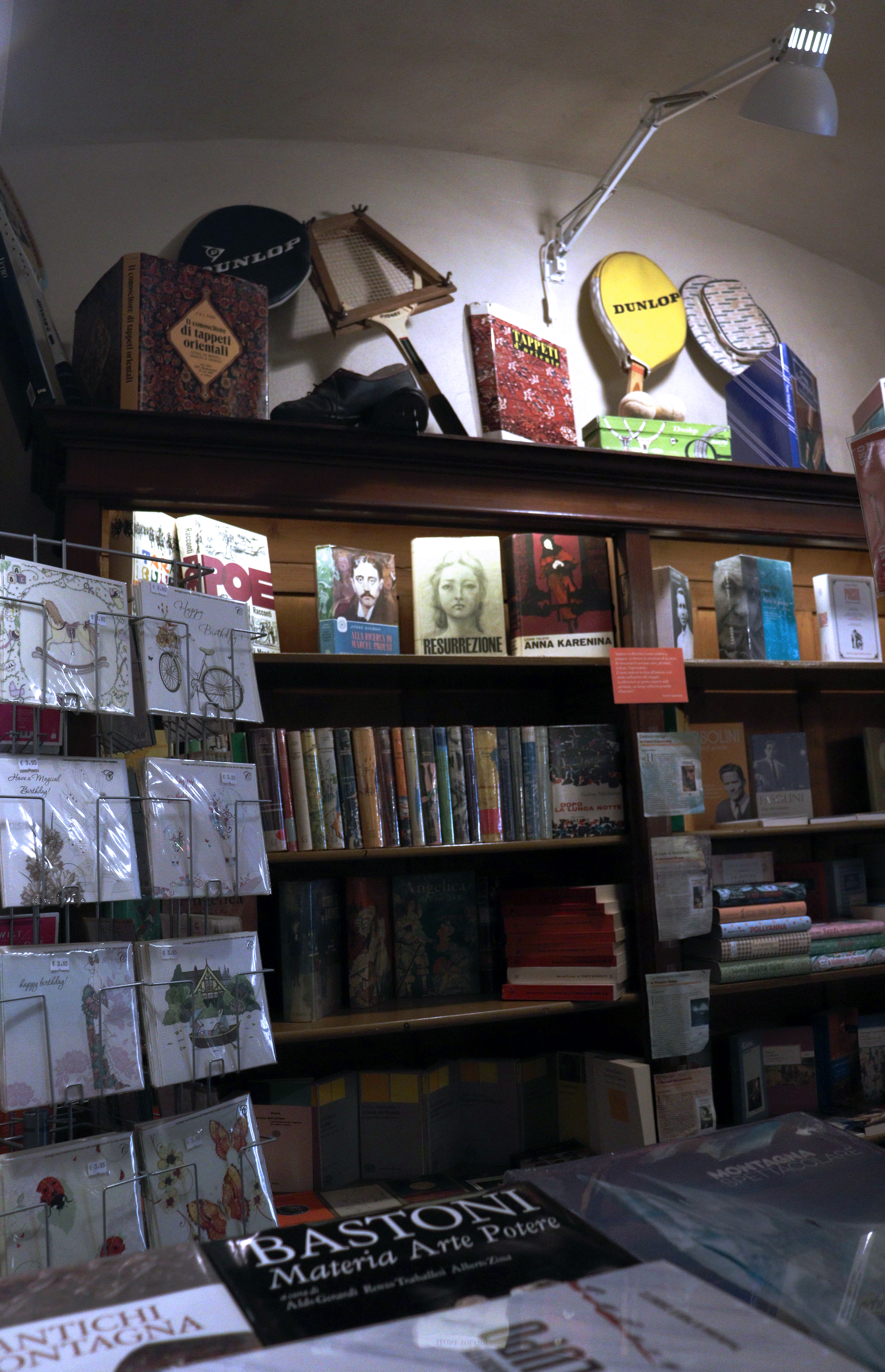 Possiamo confermare che è andata proprio così, Banco Libreria sorge dove prima vi era una lattoniera, lavoro ormai dimenticato. Appena si entra si viene colpiti dal calore del suo pavimento, in ciliegio scuro, risalente circa al ‘700, dagli arredi di un tempo, e dalla musica che arriva dal giradischi posto nella saletta al fondo.