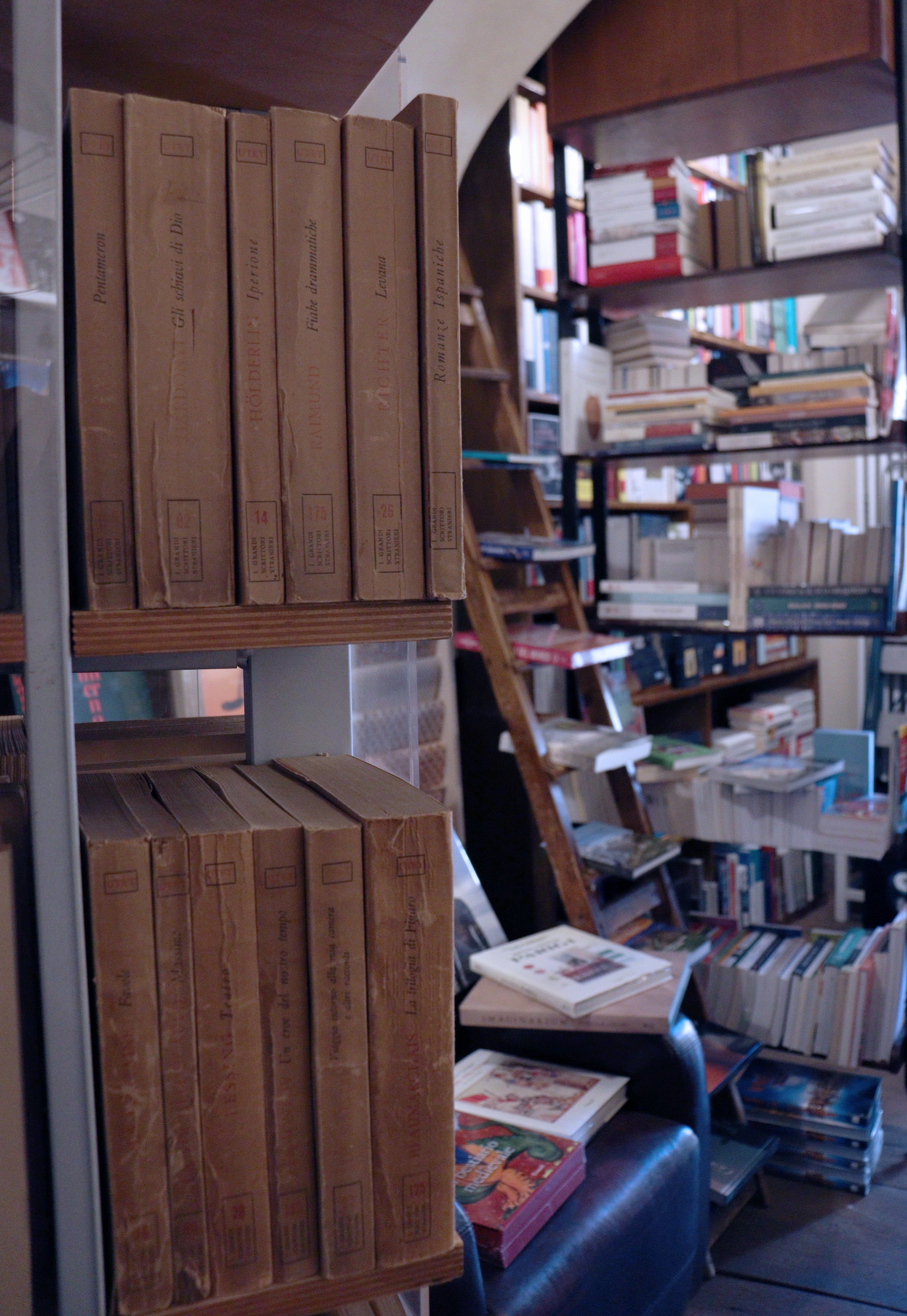 “L’idea che ho sviluppato -ci racconta Massimo- era quella di un posto dove fossi io a selezionare chi esporre, quali editori scegliere e a quali titoli dare maggiore spazio. Mi piaceva già nella mia vita precedente (così chiama la sua esperienza lavorativa antecedente, sempre da libraio, ma in misura diversa) andare a conoscerli di persona, visitare i grandi distributori e toccare con mano i fascicoli che poi avrei portato con me e posizionato tra le fila degli scaffali della mia libreria.