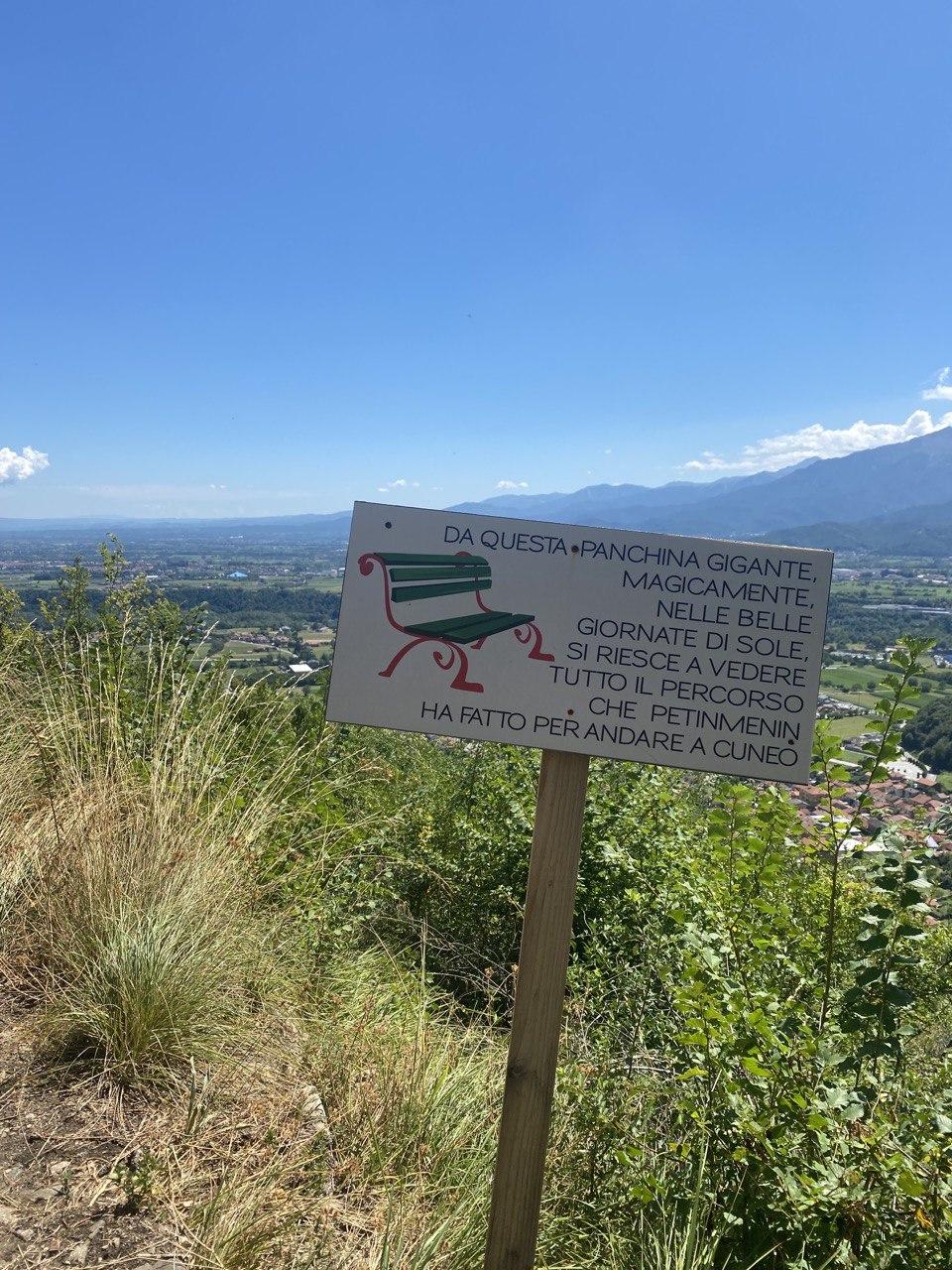 Sita sul Colle San Maurizio tra Vignolo e Cervasca la panchina posta a Madonna degli Alpini è di facile raggiungimento.