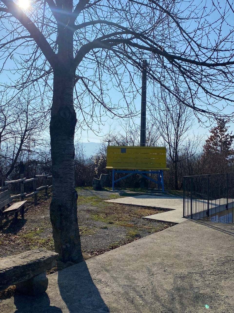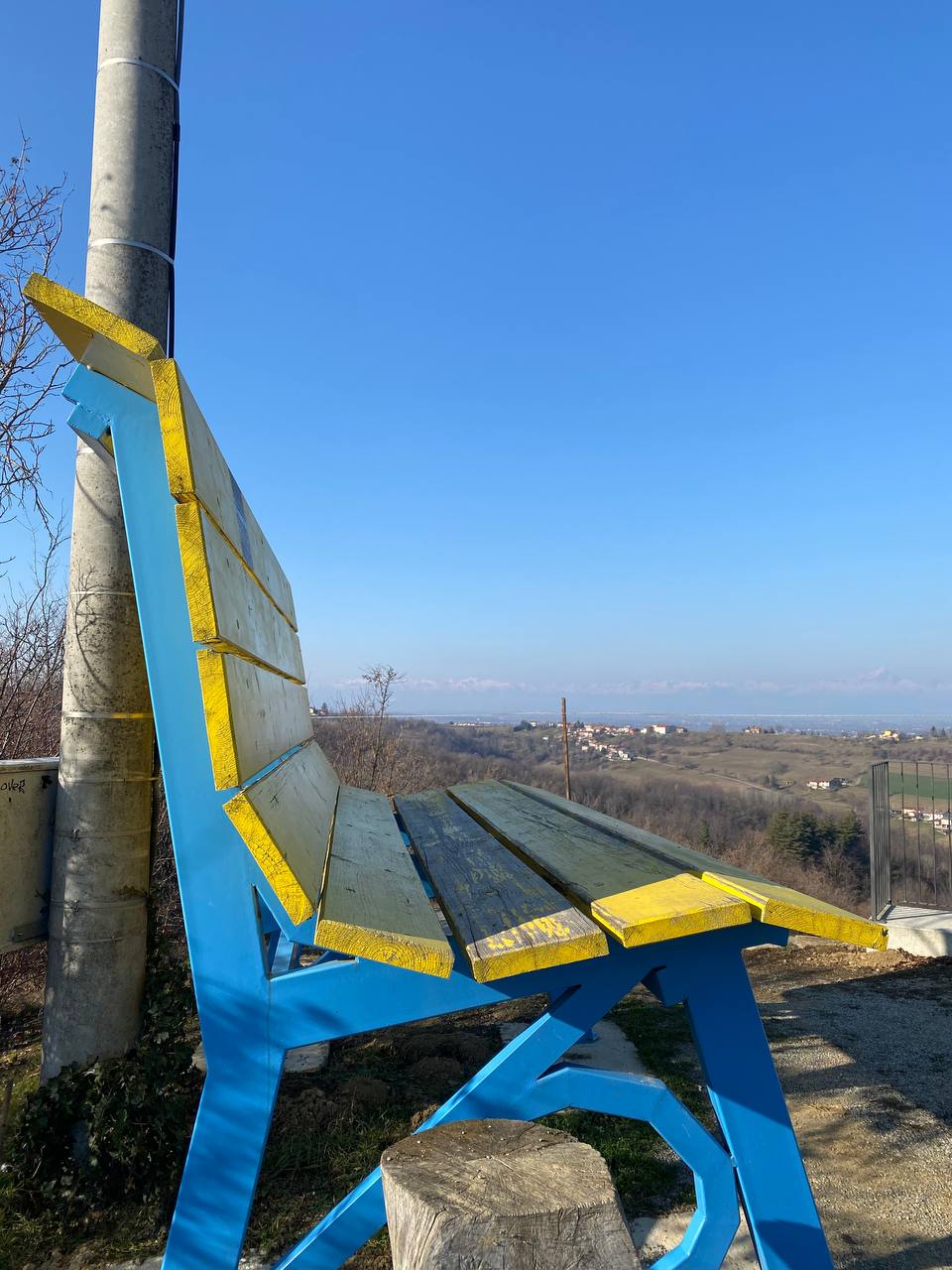 La panchina è avvolta in una quiete surreale, affacciata su un territorio ricco non solo di bellezza ma anche di cultura.