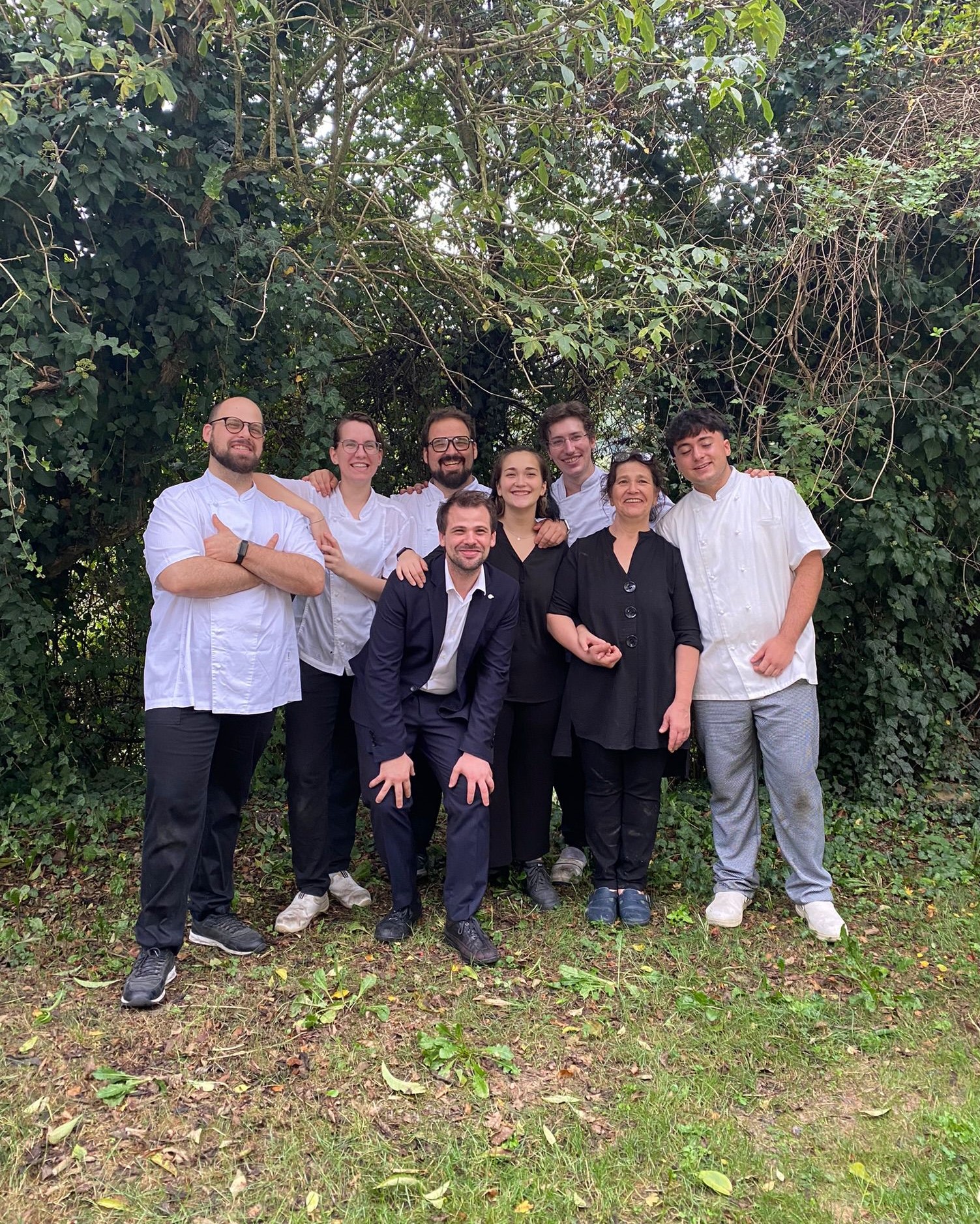 La brigata, o come ci piace ricordare, la famiglia, si compone da mamma Patrizia che insieme alla figlia Grace sono i primi volti che ci hanno accolto, per poi arrivare ad Andrea, l’esperto sommelier che ha saputo farci scoprire storie e sapori dei vini di Langa. Arrivando in cucina abbiamo avuto il piacere di vedere all’opera Stefano, responsabile della partita dei primi e Diego responsabile della partita dei primi, nonché i creatori del menù. Al loro fianco, tra un putagè e una griglia fumante, abbiamo visto all’opera Nicolas responsabile sia degli antipasti, che di supporto a Caterina nella creazione di dolci a dir poco deliziosi ed infine Davide, il più giovane e promettente acquisto del ristorante, responsabile degli entrée e degli antipasti.