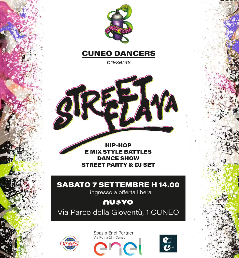 Sabato 7 Settembre al NuOVO Cuneo si terrà Street Flava 3.0 evento legato alla danza freestyle, nella sua terza edizione di “Street Flava,” un evento che si evolve di anno in anno.