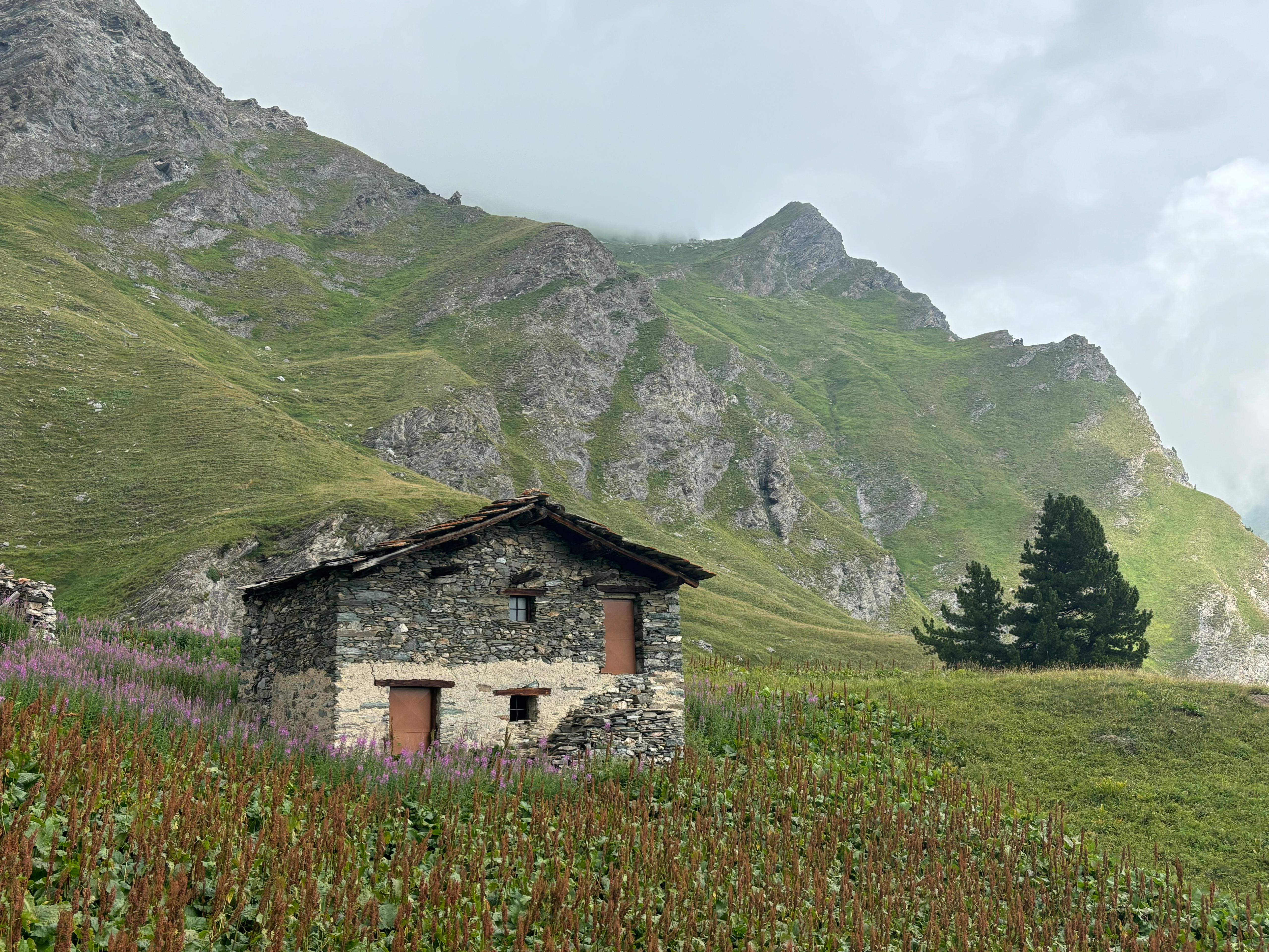 Continuando a salire oltrepassiamo una baita perfettamente incastonata nel paesaggio e da qui il terreno cambia, si fa più roccioso. Il primo lago che incontriamo è il Lago Bleu, uno specchio limpido, che riflette cielo e montagne come se volesse moltiplicare la bellezza. Lo costeggiamo tenendo la destra, direzione Colle del Longet. Osserviamo il Lago Longet, nascosto tra pieghe di roccia, mentre saliamo verso il Bivacco Enrico Olivero, un moderno rifugio che domina dall’alto. Passiamo la notte al bivacco e l’indomani ci rimettiamo in marcia molto presto. Il cammino prosegue in direzione del Colle Blanchet, passando per il lago della Niera le cui acque scarseggiano, e arrivando con un ultimo tratto più impegnativo al lago del Nigro.
